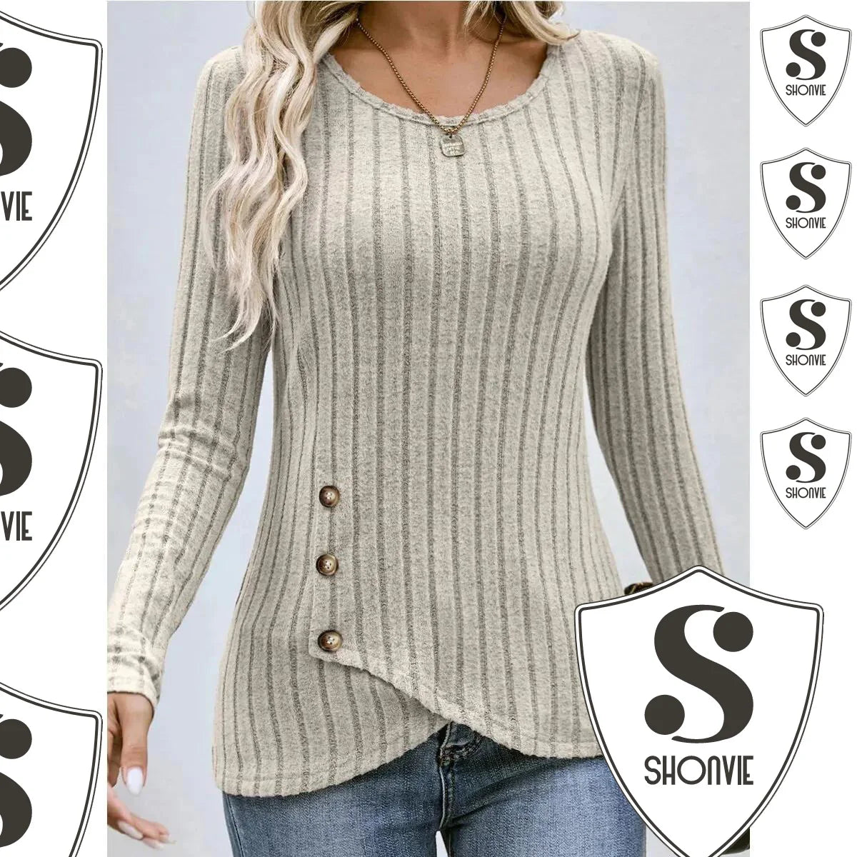 Women's Sweater Gray Long Sleeve Autumn Buttons
