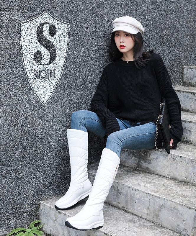 ¡Atrévete a desafiar la lluvia con estas largas botas! Con su material impermeable y su suela resistente, podrás caminar con confianza en cualquier terreno. El forro de piel artificial te mantendrá cálida y cómoda durante el invierno. ¡Siente la aventura en cada paso con su diseño de costura y tacón elevado!