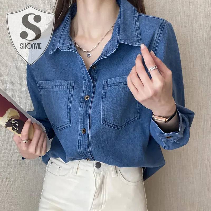 Descubre un estilo vintage y divertido con esta camisa de mujer de denim largo, con un corte suelto y un patrón sólido. Hecha de algodón y poliéster, tiene un ligero estiramiento para mayor comodidad. Perfecta para cualquier ocasión informal y disponible en tallas XL/2XL/3XL/4XL para todas las mujeres. ¡Combínala con tus accesorios favoritos y crea un look de calle único!
