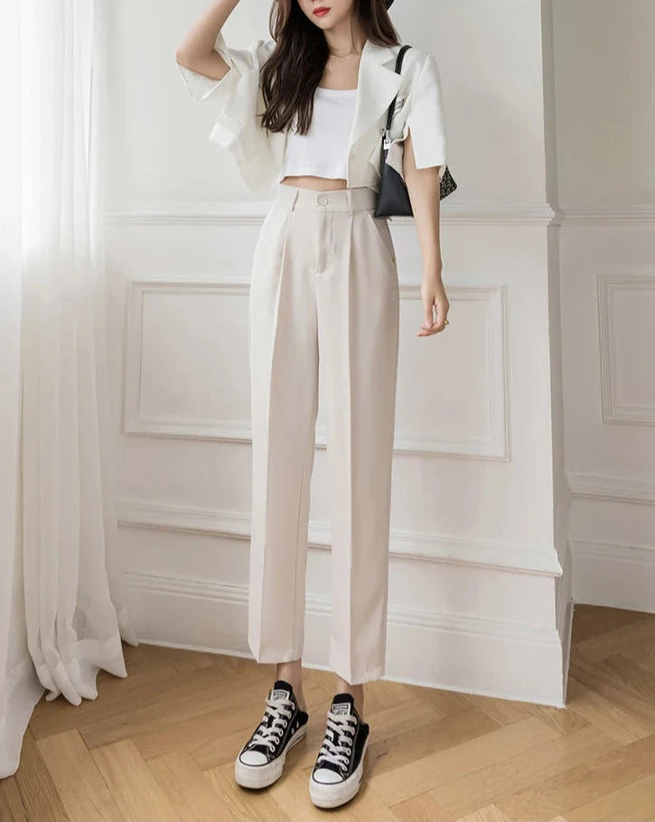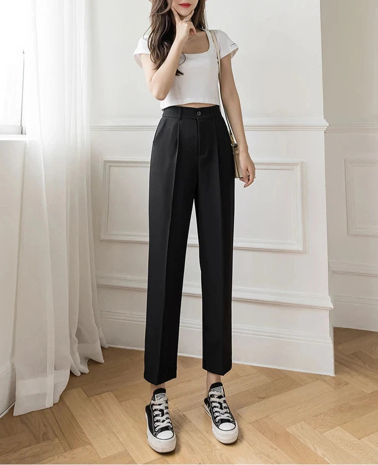 ¡Crea impacto en la oficina con este pantalón fashion! Con un corte elegante para mujer, se adapta a todas las estaciones y su cintura alta te brinda comodidad todo el día. Sin estampados, de tela resistente y cierre con cremallera. ¡Bueno para cualquier mujer en el trabajo!