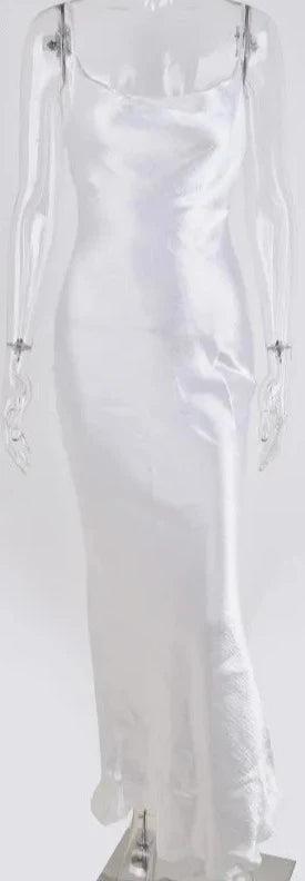 ¡Brilla en la noche con este vestido de satén largo y sexy! Con un poco de elasticidad y corte de trompeta, este vestido de cuerpo entallado te hará sentir como una reina. Perfecto para fiestas y ocasiones especiales de verano, ¡este vestido de tirantes con cierre de cremallera te hará destacar en la pista de baile! ¡Pídelo hoy!